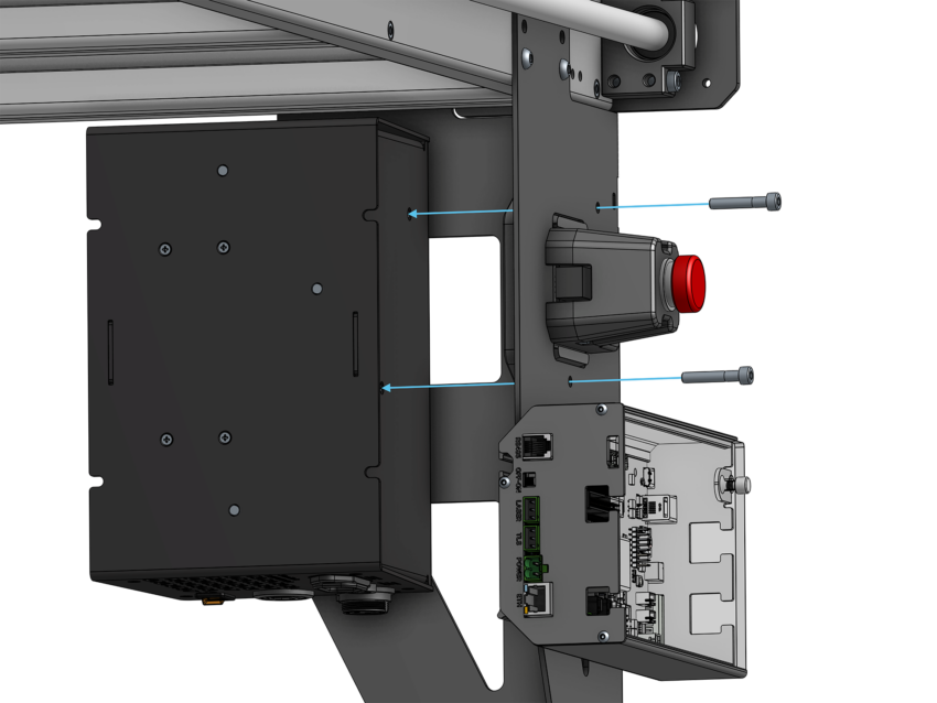 Tighten the M5-10mm screws, clamping the enclosure to the table leg.