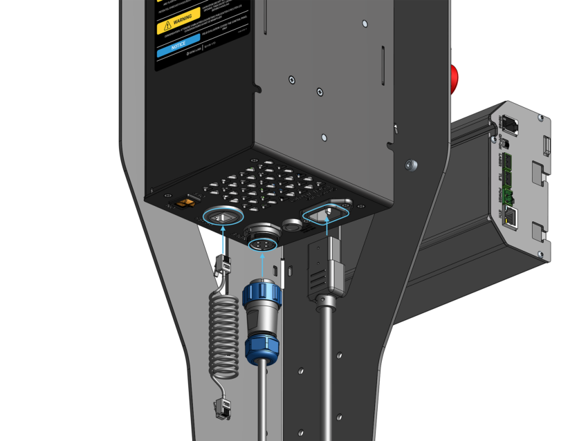 Note: Match the keyed features on the cable connector with the slots of the spindle body receptacle, allowing the connector to mesh.