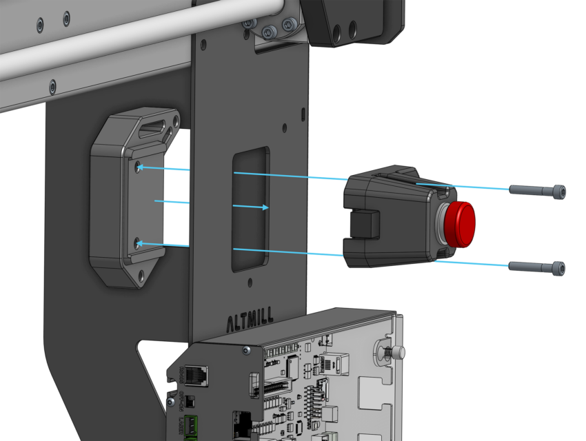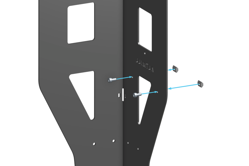 Insert two (2) M5-10mm socket head screws into the two (2) holes under the “ALTMILL” cutout in the side of the left leg. Thread M5 T-nuts onto the screws, leaving the T-nuts loose.