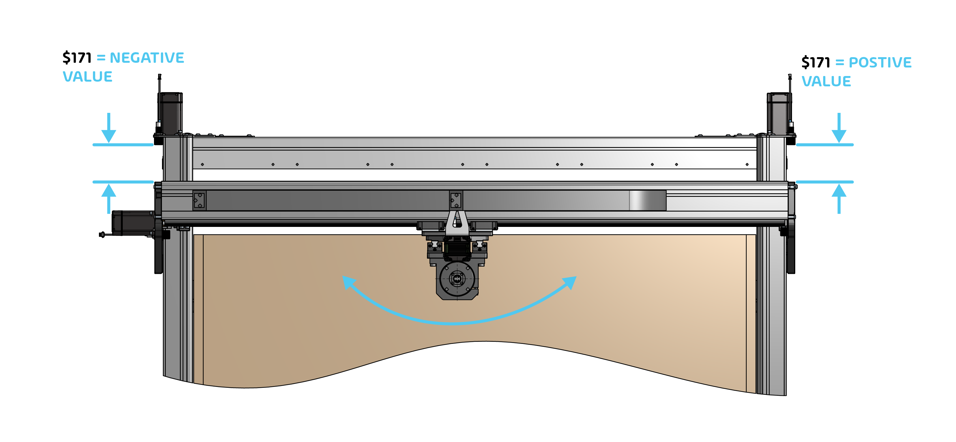 - Setting a positive value will cause the right side of the machine to stop slightly forward after every homing cycle (turning the whole gantry clockwise).