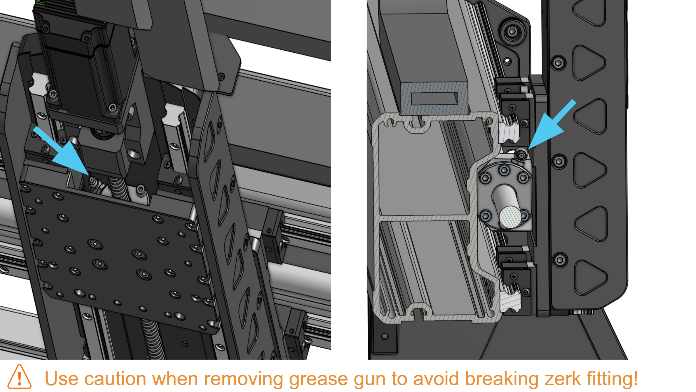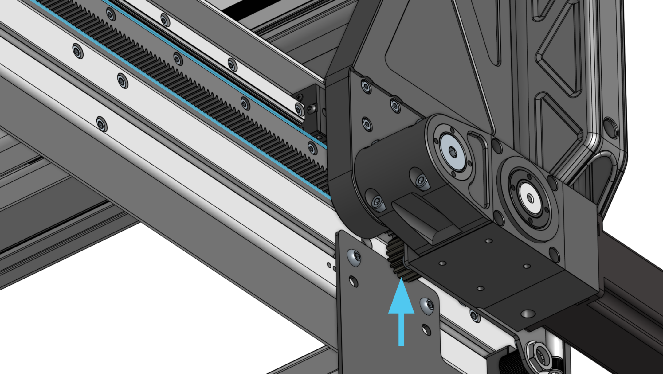 Clean – Use nylon wire brush to clean the rack and pinion. You do not need to remove the housing, the pinion should be accessible from the bottom of the Y-gantry.