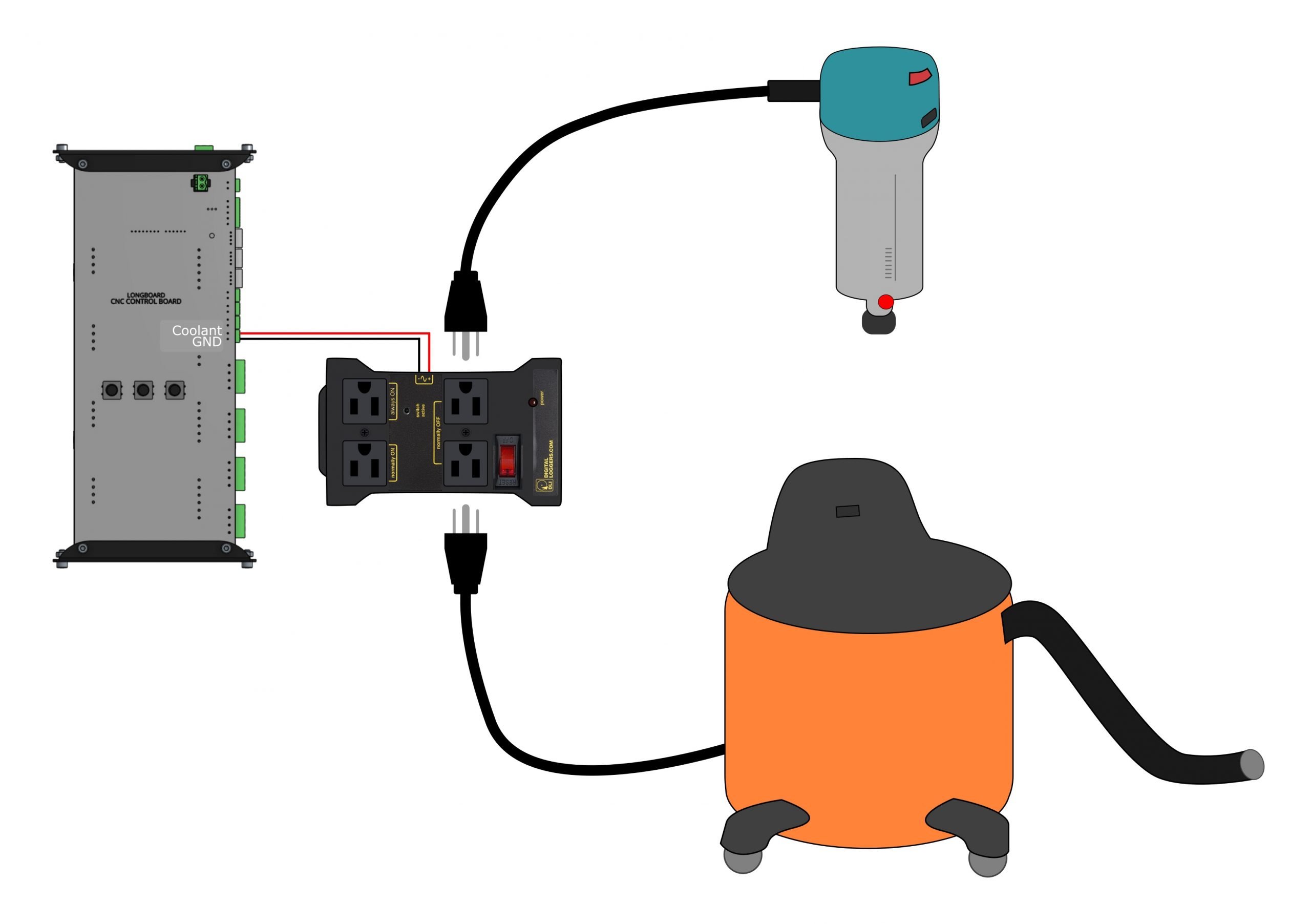 An IOT relay is a smart power control device that allows your CNC to automatically switch external tools on or off. When connected to your controller’s output signals, the relay can control a router, vacuum, or lighting automatically when a job starts or ends.