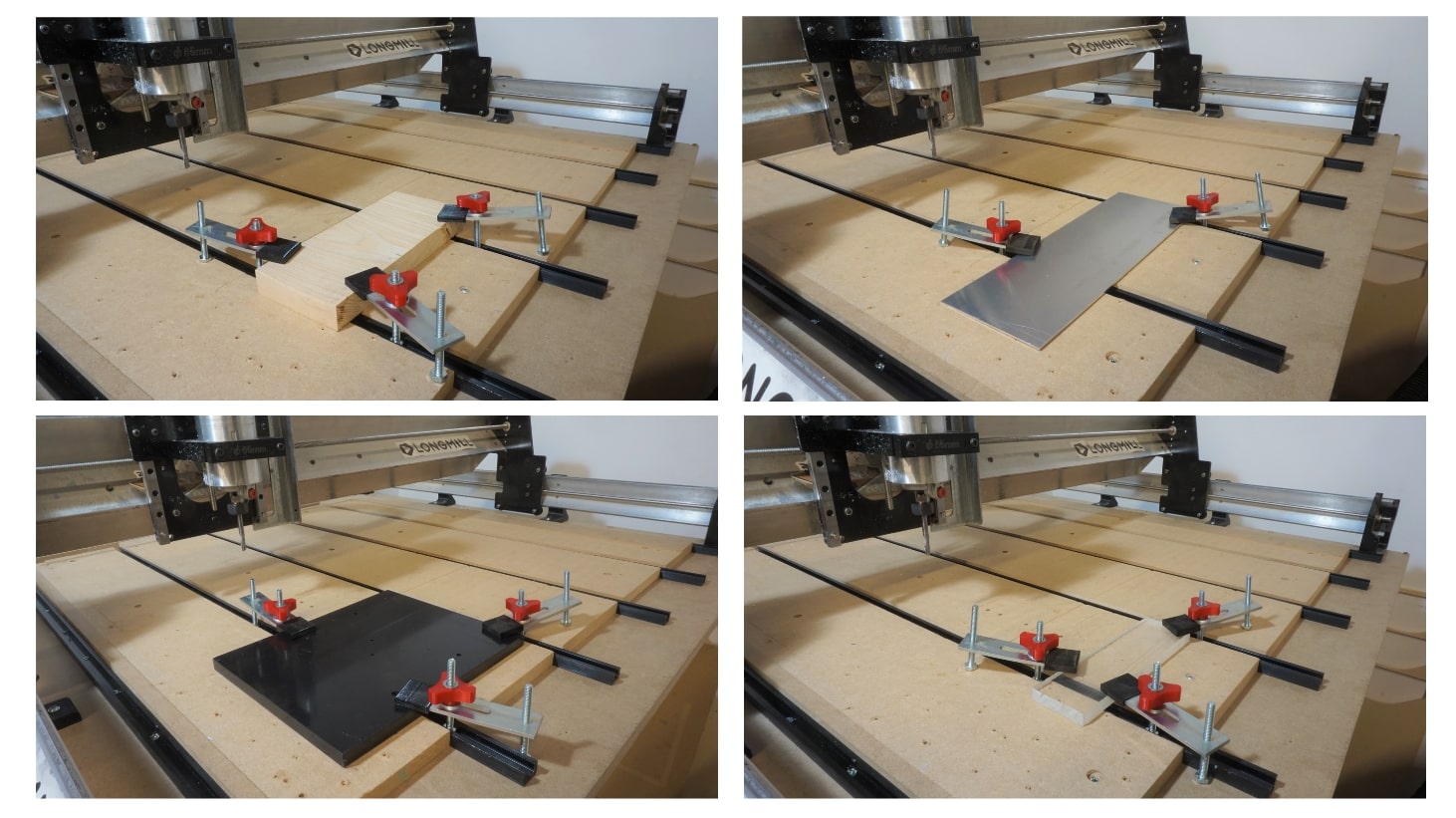 T-track clamps secure your material to the CNC bed using aluminum tracks. They can be repositioned along the tracks to accommodate different material sizes and shapes, providing both flexibility and stability.