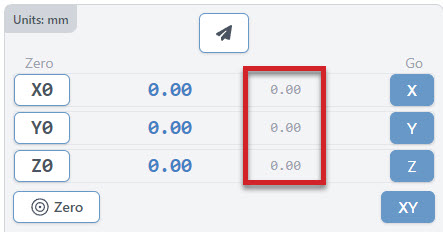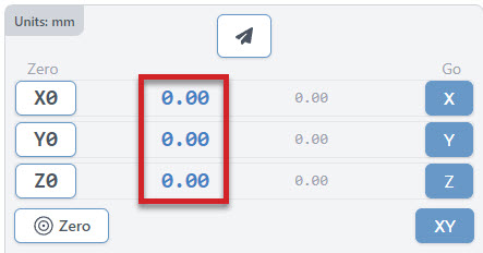 The large blue numbers tell you the current position of your machine. Once you set the zero of each axis, they will all read 0.00.