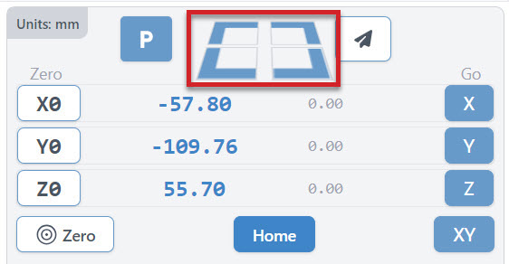 Four Rapid-Travel buttons to move your CNC at its maximum speed to any of your machine’s 4 corners (offset by 5mm). These should only be used once your machine is homed.