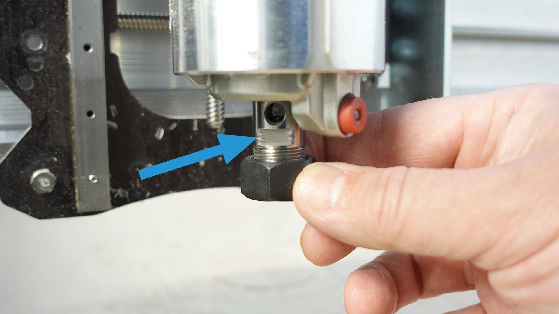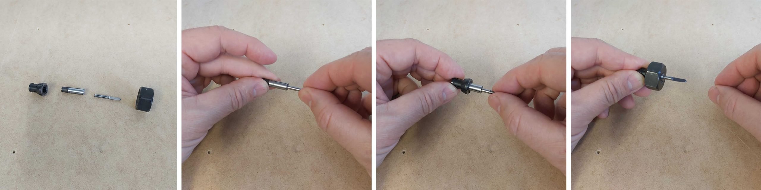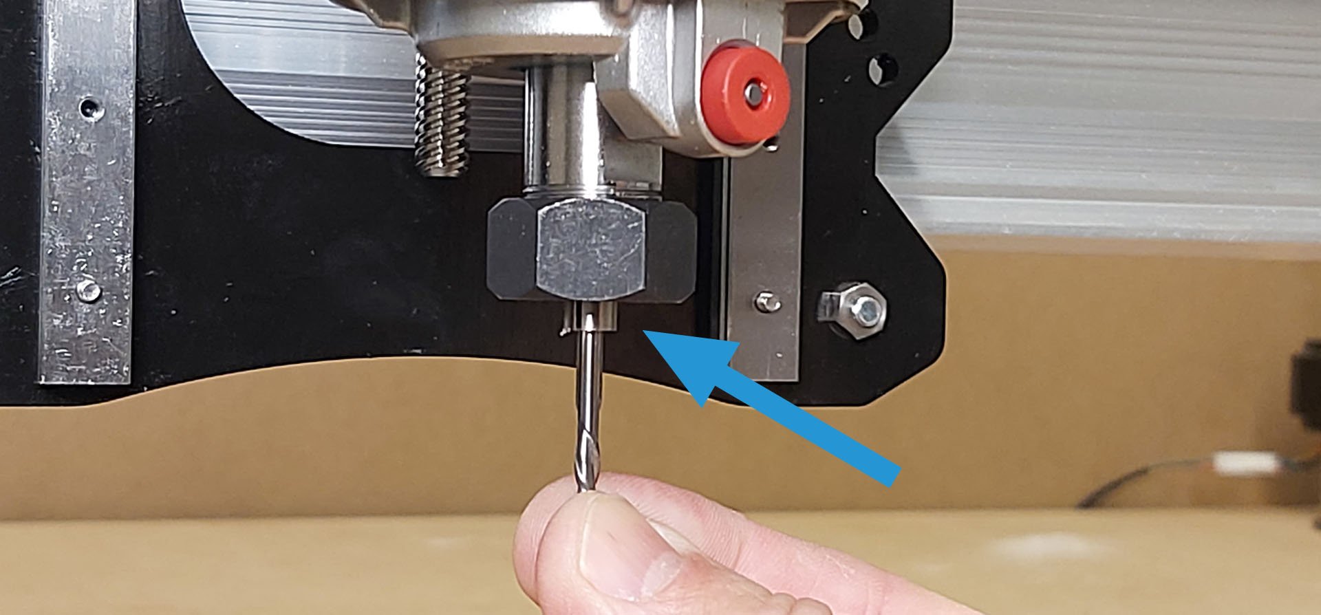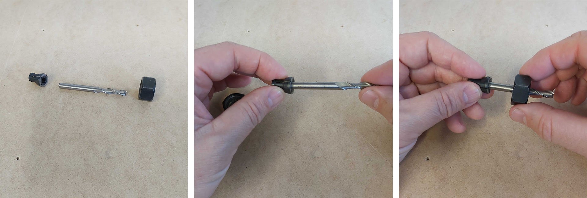 Some bits like v-bits or surfacing bits require the bit shaft to be placed through the nut first, then into the collet.