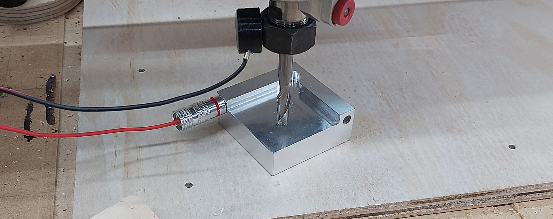Automatic zeroing or “probing” works by touching a conductive plate with the bit on the machine, to set the corner of your workpiece as the zero. To find the XYZ axes, place the touch plate on a corner of the material and perform the XYZ probe operation. The router will automatically move through all three axes. It will touch on the top and two sides to accurately find the corner. Detailed information can be found HERE