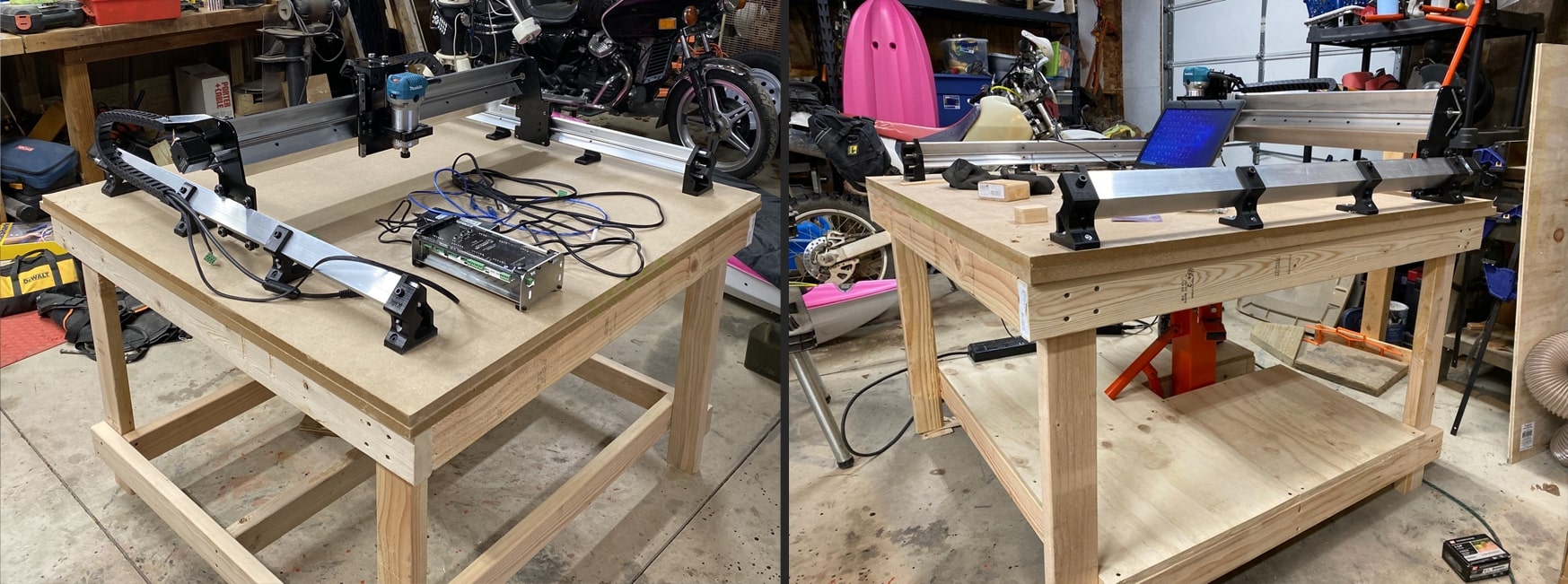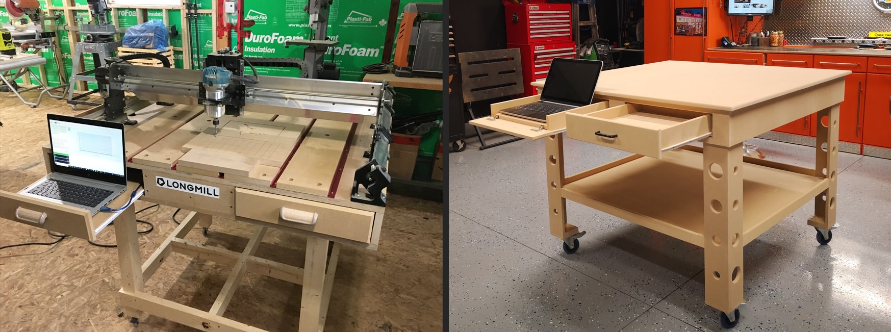 There has been a variety of table designs to pop up within our community as each CNC owner works to set up their machine to suit their cutting needs. Your table design will largely depend on how you plan on using your machine and your space constraints A big space can mean a big table, meanwhile, a small space might require a folding or retractable table. Knowing where you want your wires to run as well as drawers or shelves for storage, accessories, and your computer can all help make your final layout that much better.