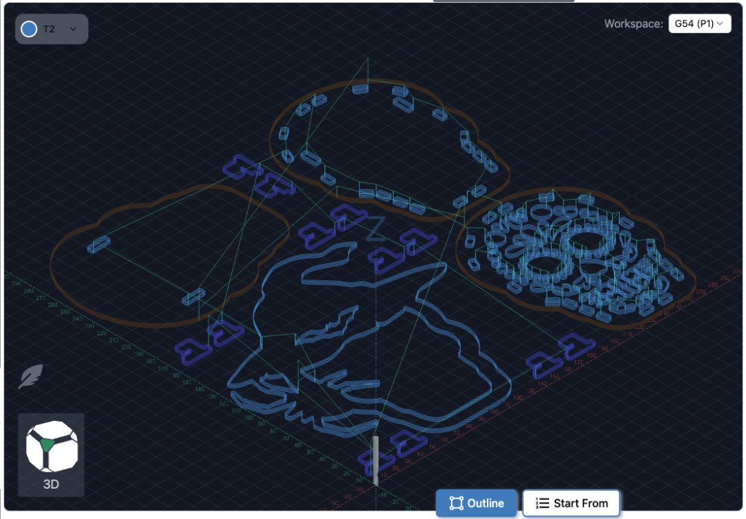 Visualizing how your cutting instructions (g-code file) are going to play out before executing them on your machine is very valuable. It can help you verify that the machine is going to cut out your project in the way that you expect it to. Most CAM or Interface software will have built-in g-code visualization for this reason, either showing the line that the cutting tool will follow or rendering a full 3D view of how the material is going to be cut away.
