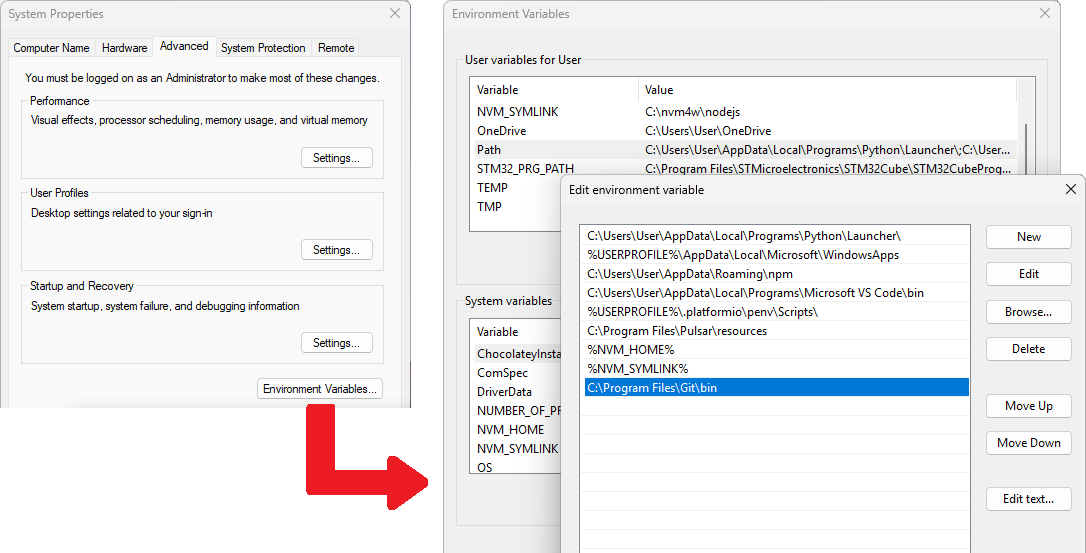 If you prefer using PowerShell or Command Prompt, you can makebashavailable system-wide:- Search for “Environment Variables” in the Start Menu and select Edit the system environment variables.