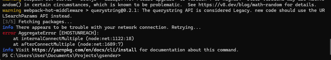 yarn installrelated to package resolution,node-gyp, or general build failures. - Solution: