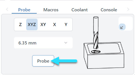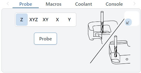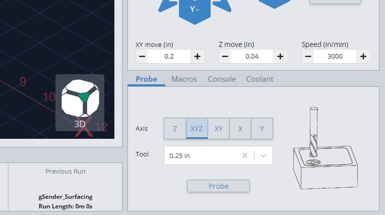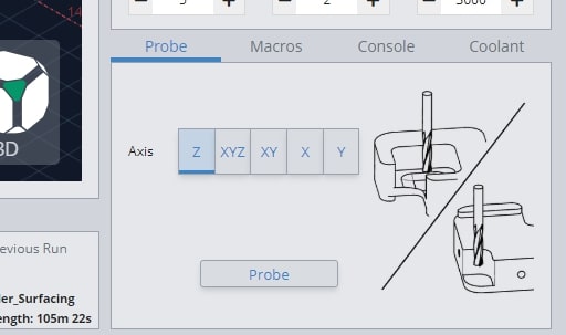 Your Probe tab at the bottom right side of the screen should now update to show images of the AutoZero. These tell you how you should position your bit if you’d like to perform probing for that axis.