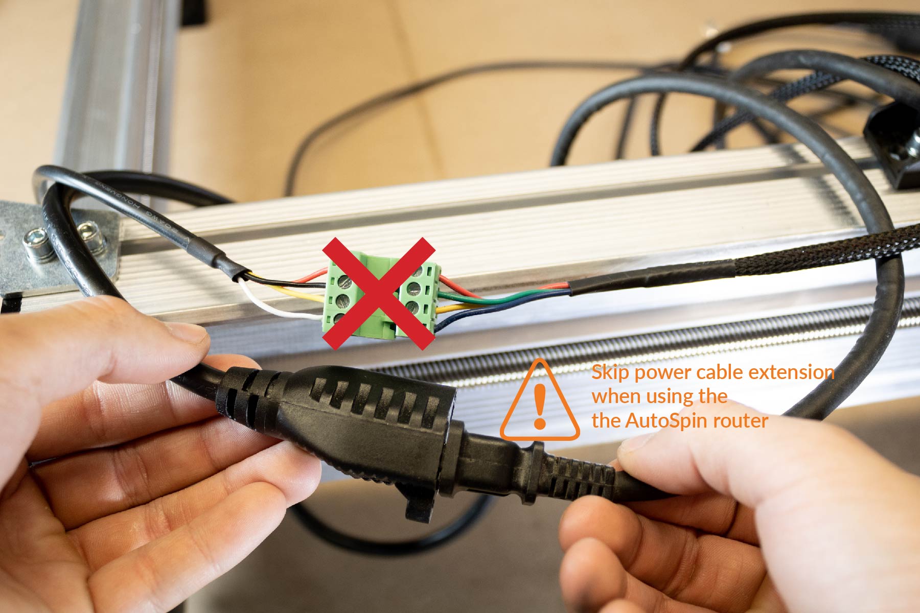 If you have a Makita router, connect the power extension to the router’s power cord. The AutoSpin is long enough, so no extension needed!
