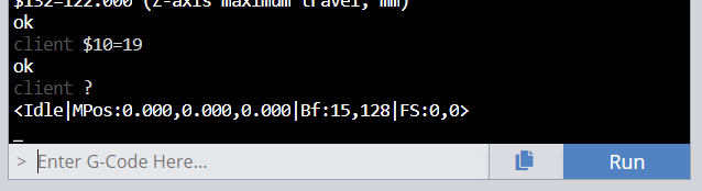 If you see the following, the issue is on the board and a replacement will be required to use the homing switches. Once troubleshooting is complete be sure to send “$10=3” in the console to exit from the special reporting state.