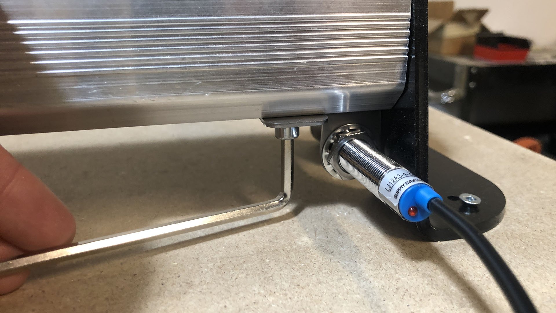 - With the limit switch plugged into it’s corresponding connector, i.e., Z limit switch plugged into the Z port, put a piece of metal in front of the sensor. Does the LED light on the back of the sensor turn on?