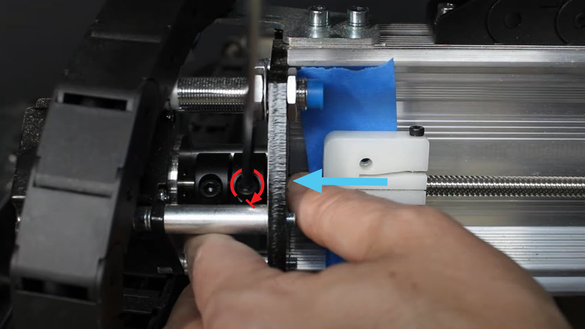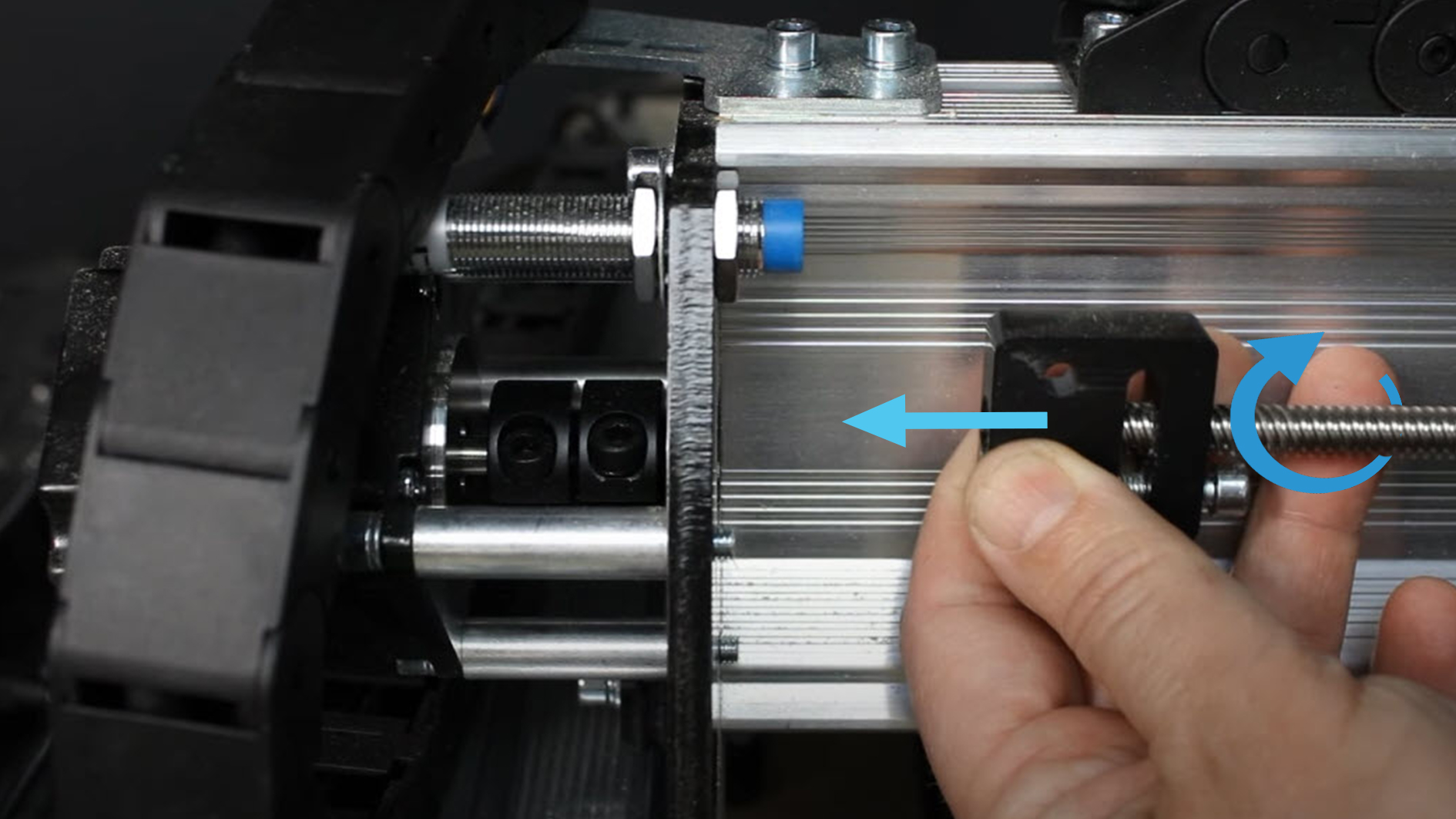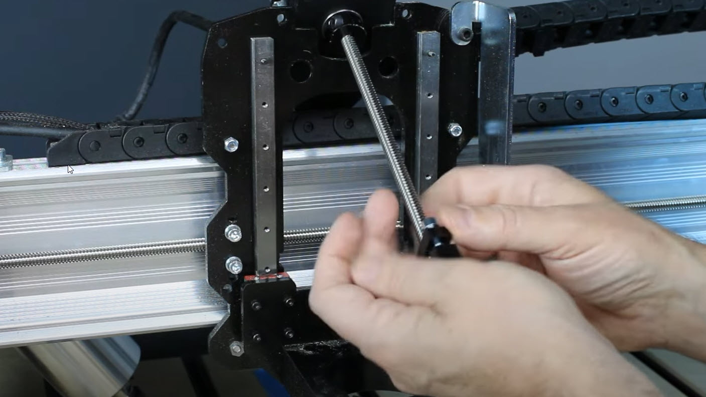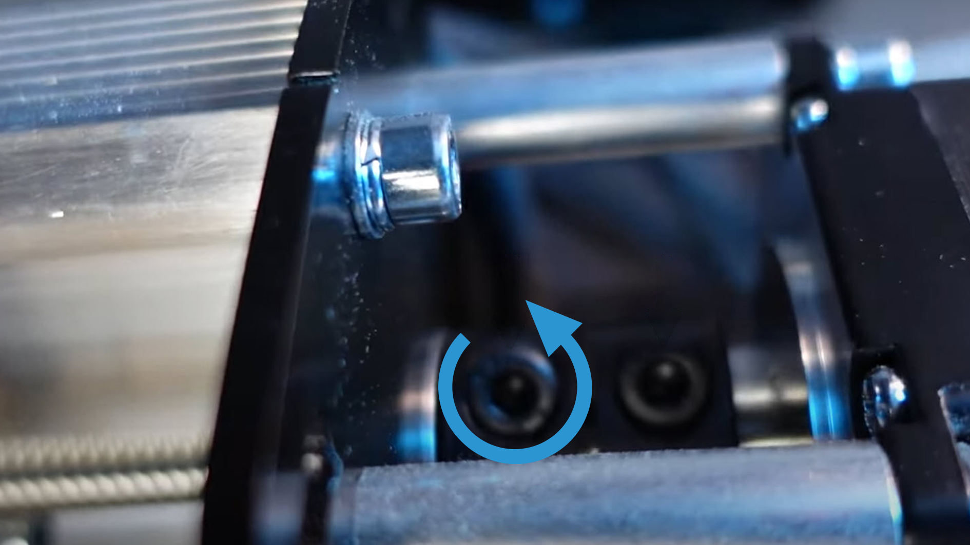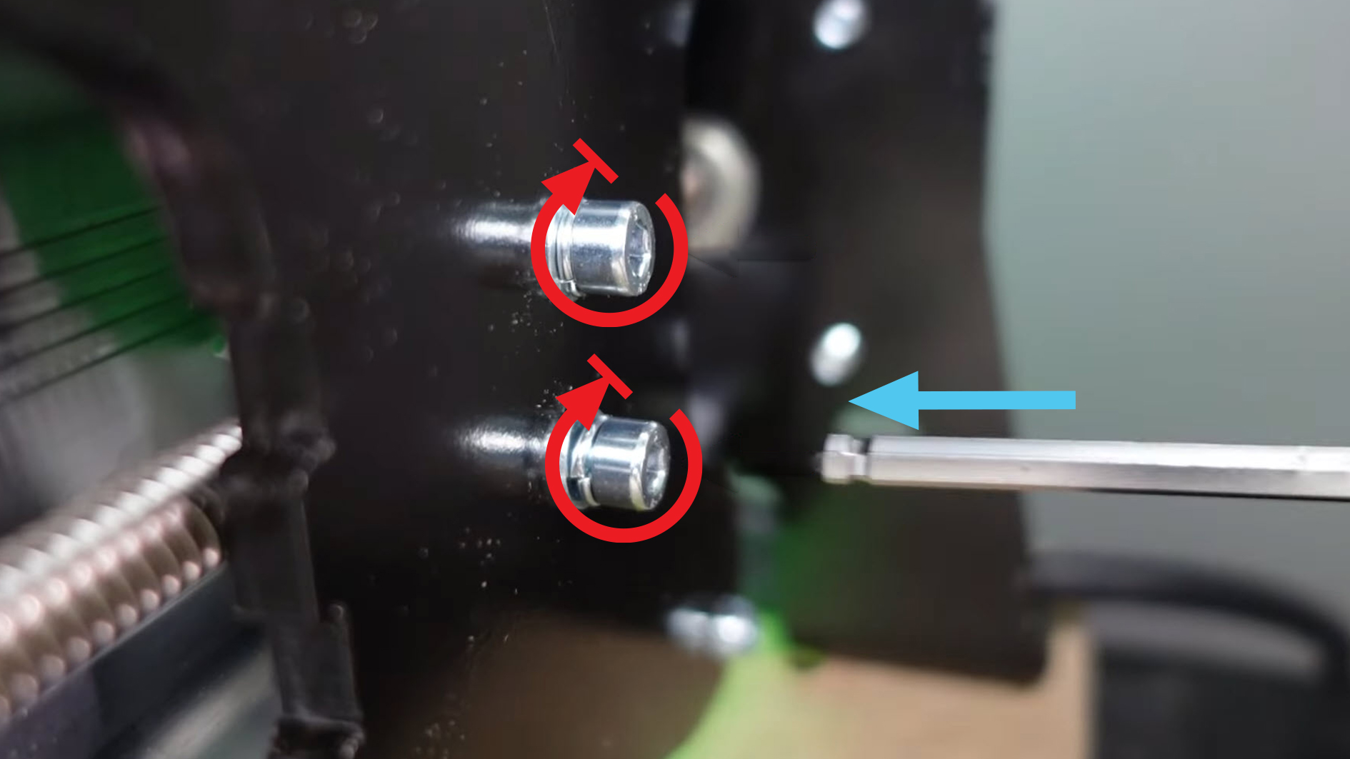 - With your Allen key, remove the two M5 mounting screws from the backlash nuts on the Y-axis plates on both the left and right sides. Once they’re removed, manually push the Y-axis away from the nuts so you can reach them underneath.