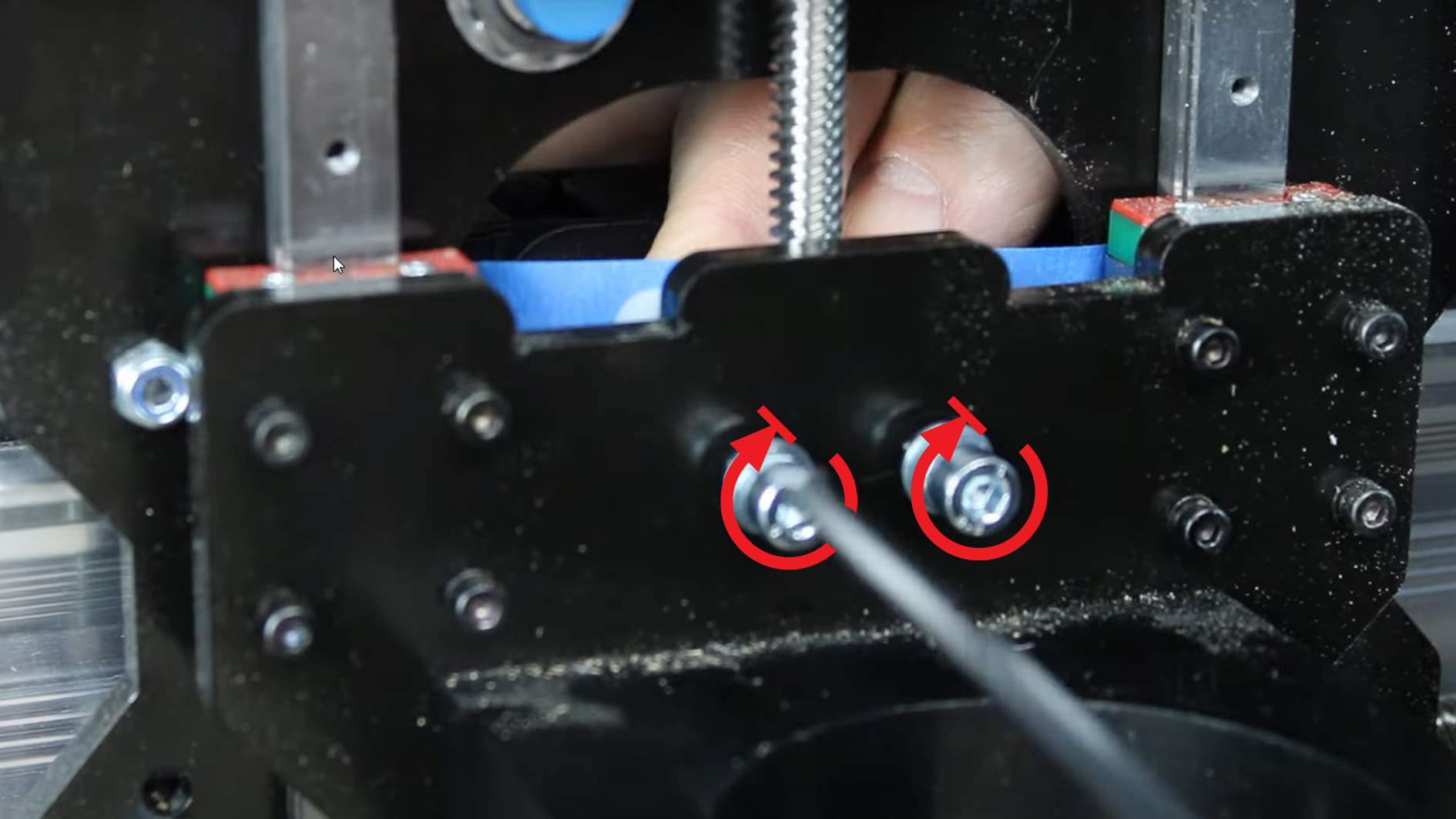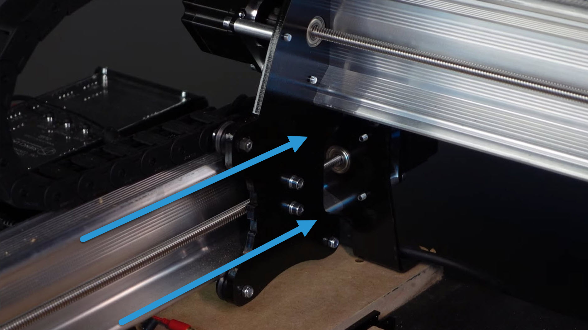 - Great job! Now push the Y-axis to the back again, over the new backlash nuts and reinstall the mounting screws. Tighten until the split washer is compressed, alternating between both bolts to maintain even pressure, being careful not to over tighten them. Repeat this step for the right side of the Y-axis.