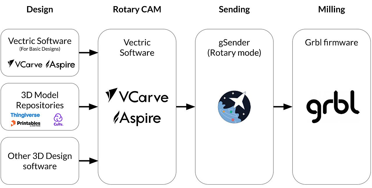 We highly recommend that you use software by Vectric (VCarve Desktop / VCarve Pro / Aspire) since it offers best-in-class support for rotary and is relatively inexpensive. For the purposes of this article we will focus on how to create rotary toolpaths in VCarve.