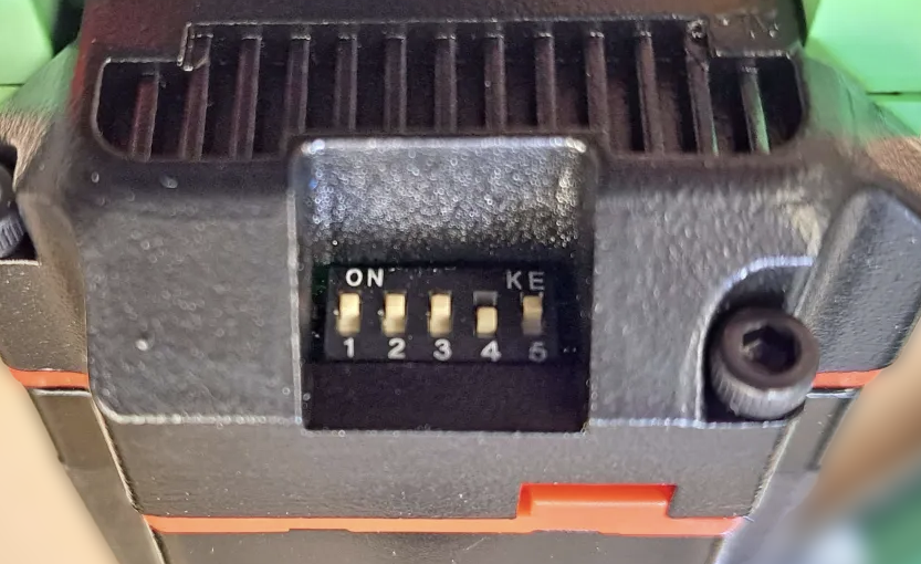 - If that does not work, please ensure that the DIP switch on your Closed Loop Vortex motor is set as shown below: ON-ON-ON-OFF-ON