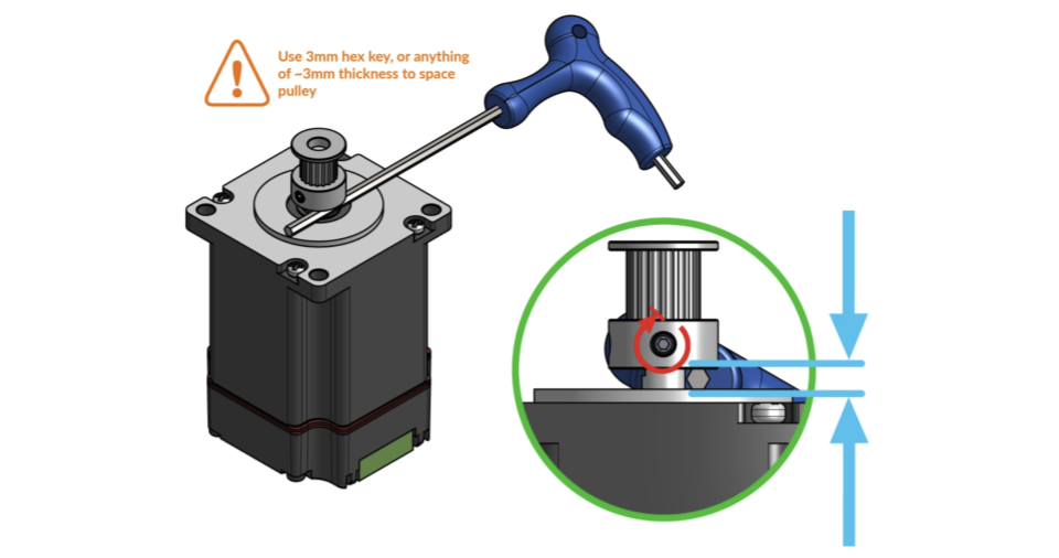 Use a 3mm or M4 allen key to space the pulley off the motor face, keeping alignment with the flat.